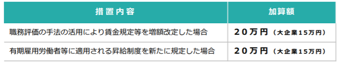就業規則または労働協約の定めるところにより、雇用するすべての有期雇用労働者等に、正 規雇用労働者と共通の職務等に応じた賃金規定等を新たに作成し、適用した場合に助成するコースです。