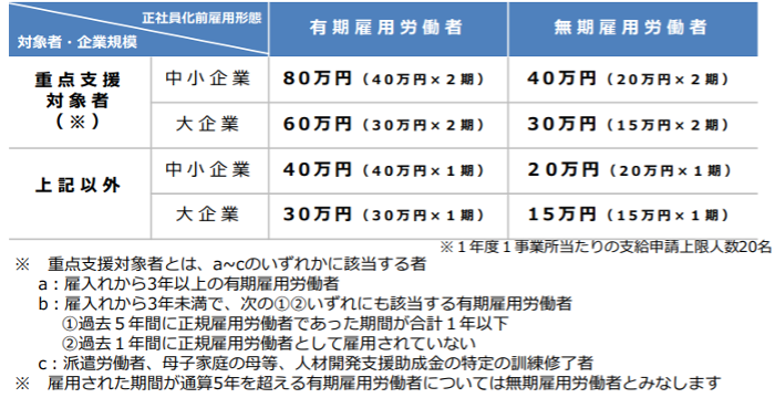 有期雇用労働者、短時間労働者、派遣労働者といった、いわゆる非正規雇用労働者の企業内でのキャリアアップを促進するため、正社員化、処遇改善の取組を実施した事業主に対して助成する制度です。